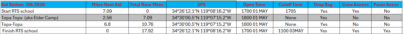 TopaTopa Aid station # One at an Elevation of 5,271ft Rock Tree Sky School finish 1,574 Ft